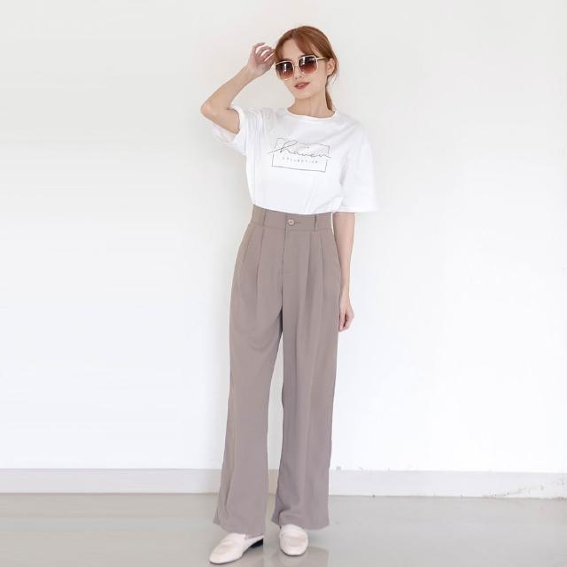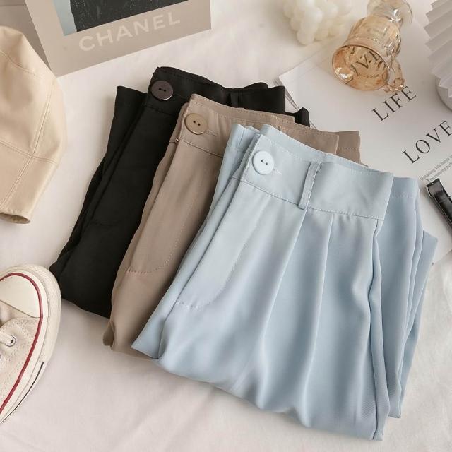 MUMUSHOPMUMU P21881 顯瘦視覺 高腰 西裝直筒褲 卡其色 S 休閒直筒褲 西裝褲 黑褲 寬褲 長褲 休閒褲 女裝