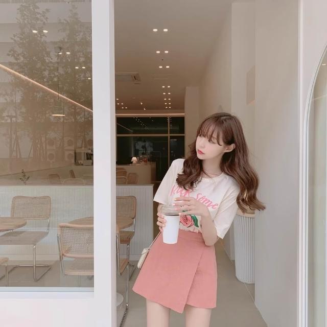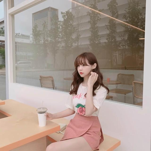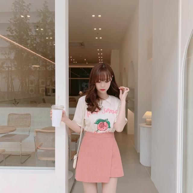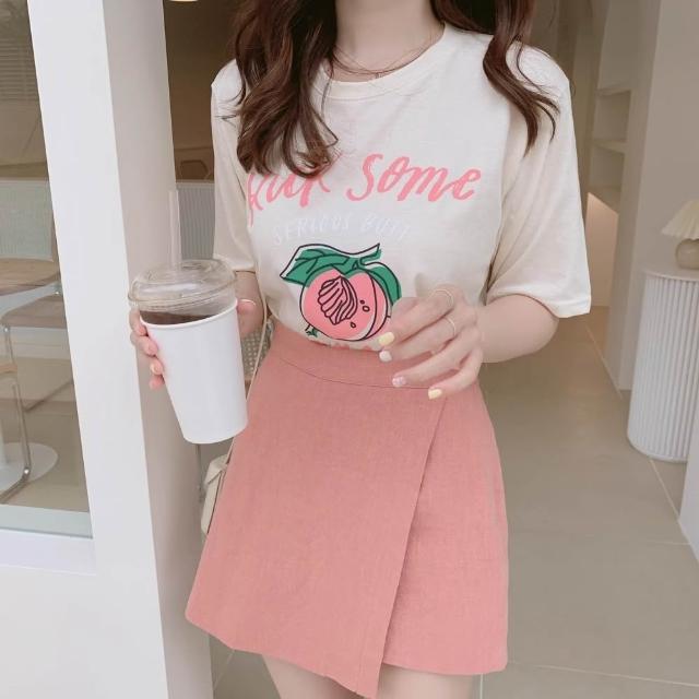 MUMUSHOPMUMU T12166 水蜜桃印花圓領上衣 白 短袖上衣 短T 女生短袖T恤 T恤 女裝 現貨
