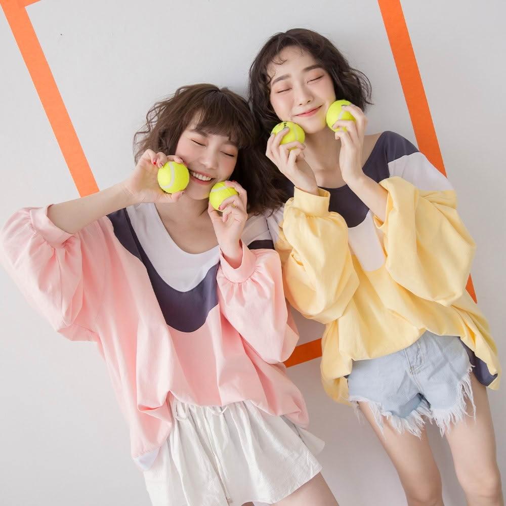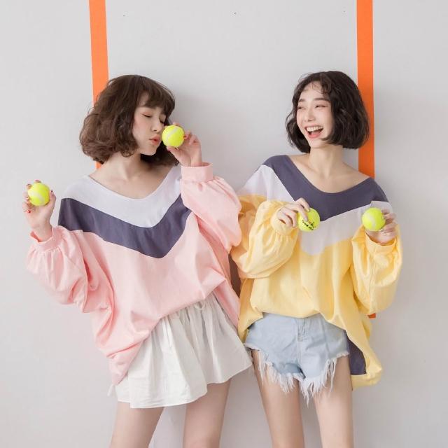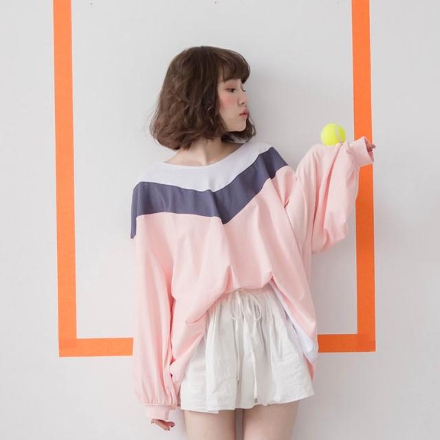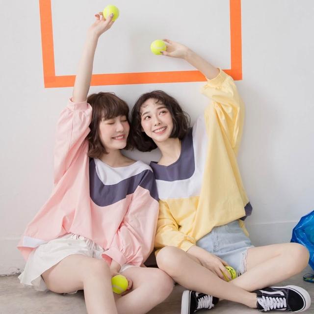 MUMUSHOPMUMU T18217 拼色寬鬆可愛感長袖上衣 寬鬆上衣 印花T恤 長袖T恤 寬鬆T恤 薄長袖 長袖上衣 台灣製 MIT
