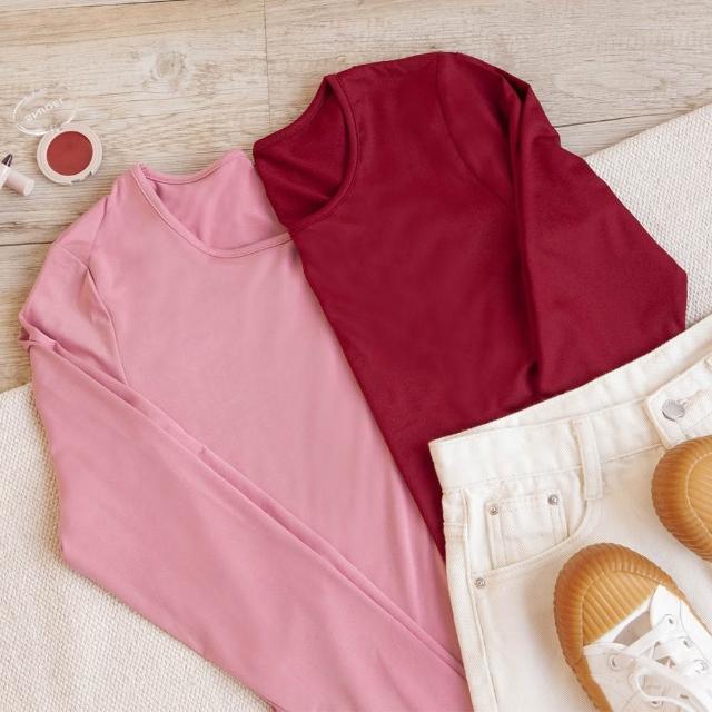 MUMUSHOPMUMU T34589 長袖百搭舒適超保暖圓領內搭T恤 - 粉M 長袖上衣 內搭長袖上衣 發熱衣 打底上衣 台灣現貨