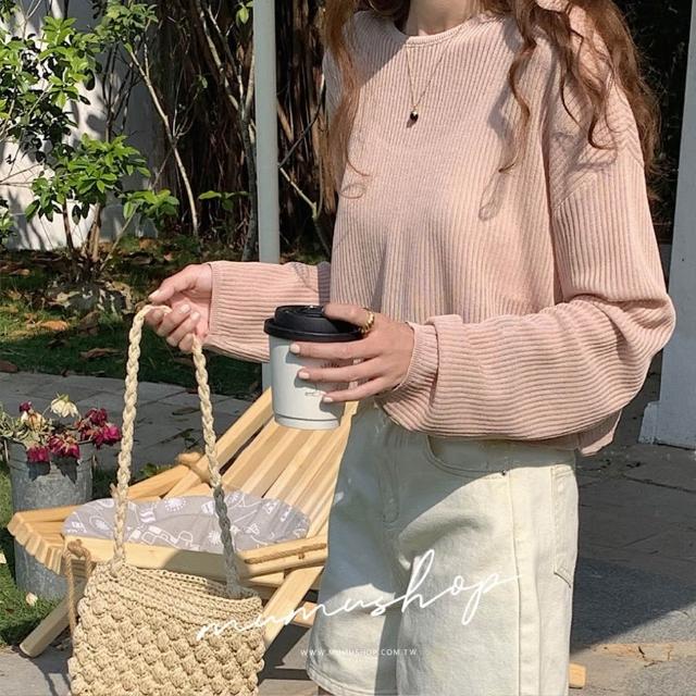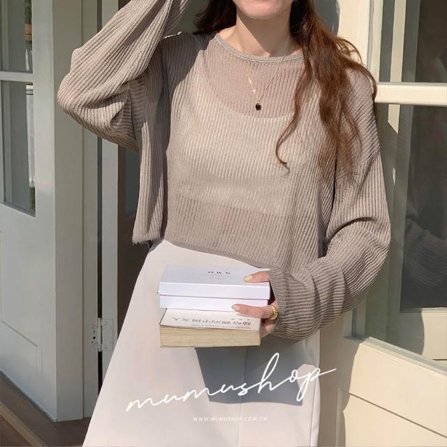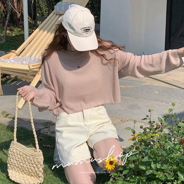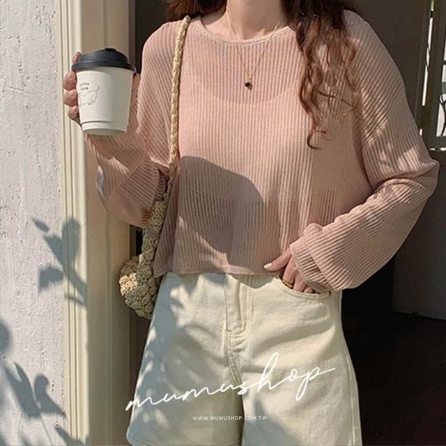 MUMUSHOPMUMU T33580-3 氣質坑條透膚短版長袖上衣 微透 短版上衣 長袖上衣 女裝 現貨 NG特惠商品 微瑕疵出清
