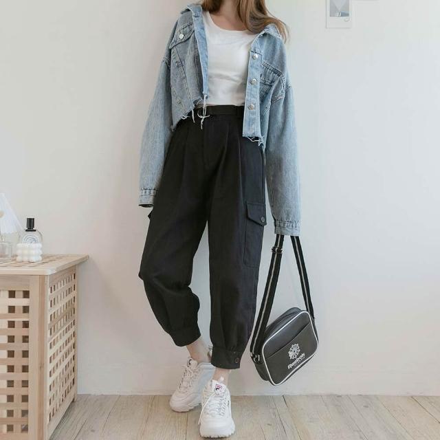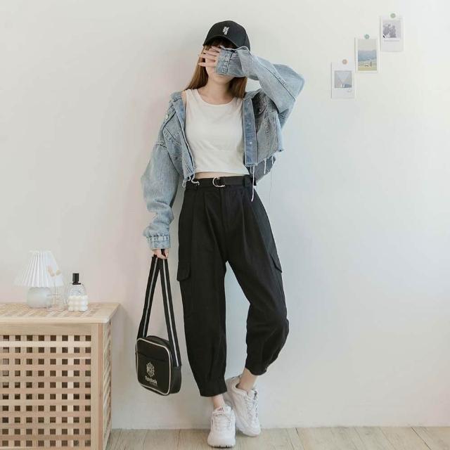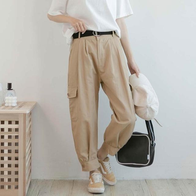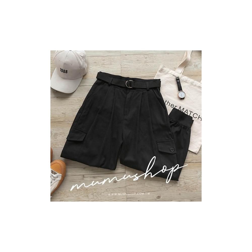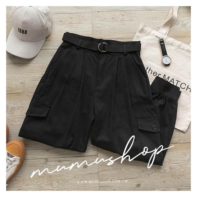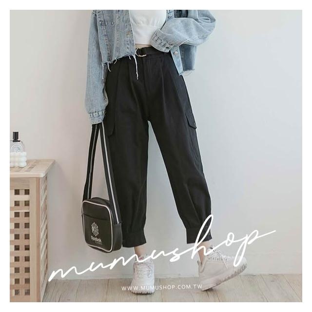 MUMUSHOPMUMU P29323 個性寬鬆工裝褲 黑 L 附腰帶 工裝褲女 帥氣 休閒褲子 直筒褲 哈倫褲 女生長褲