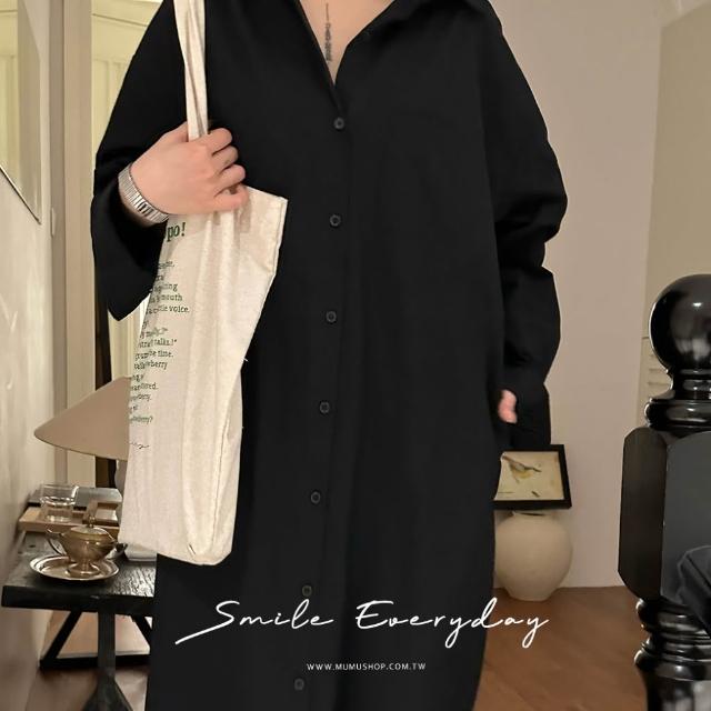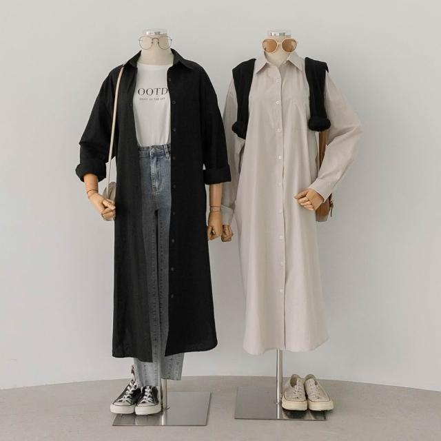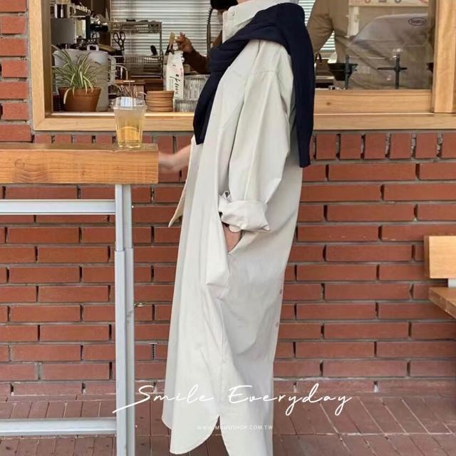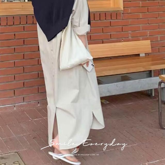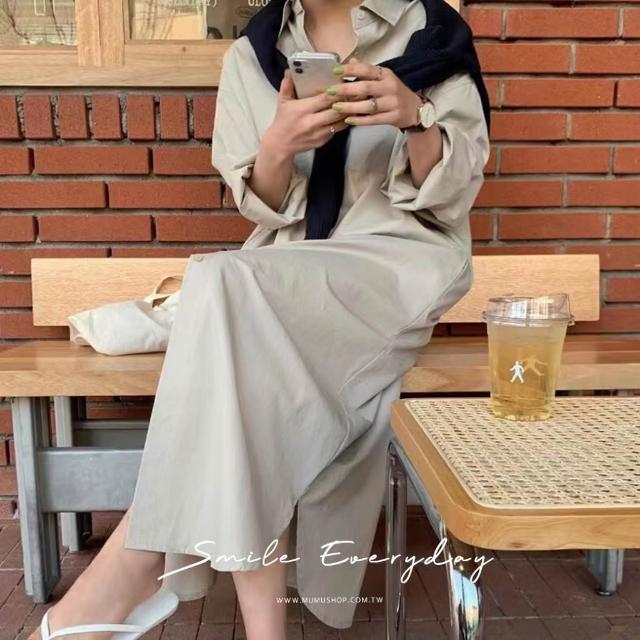 MUMUSHOPMUMU O86266 素色慵懶排釦長洋裝 奶灰 一件式洋裝 過膝洋裝 防曬罩衫 長洋裝 女裝 現貨