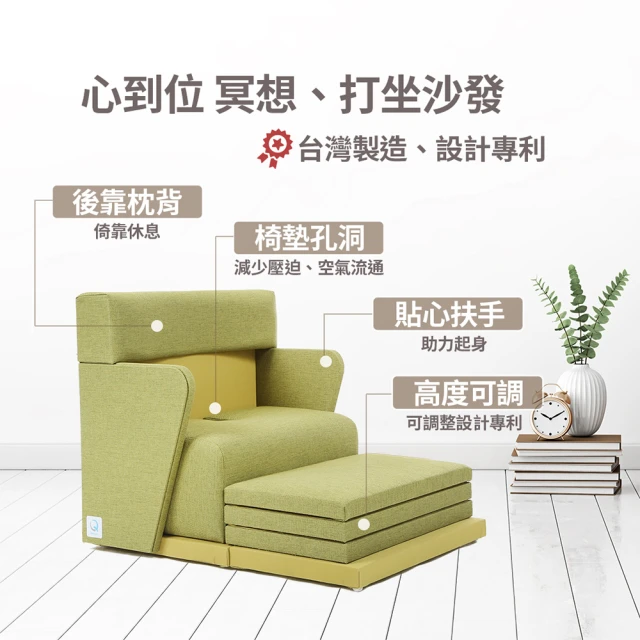 Quelea 心到位可調整冥想沙發 打坐椅 靜坐椅 禪坐椅 禪修椅(MCH1-香椰綠 靜心/冥想/打坐/禪修/盤坐)