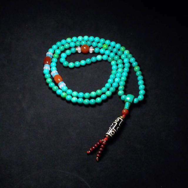 Quelea 心到位108顆綠松石念珠與南紅瑪瑙佛珠 九眼天珠與龍紋瑪瑙佛珠