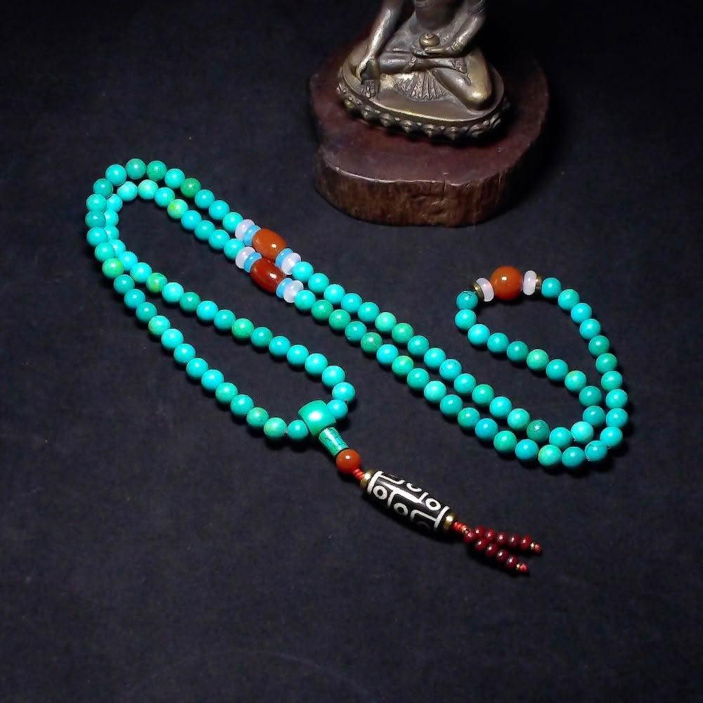 Quelea 心到位108顆綠松石念珠與南紅瑪瑙佛珠 九眼天珠與龍紋瑪瑙佛珠