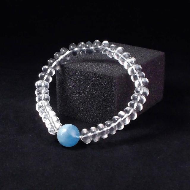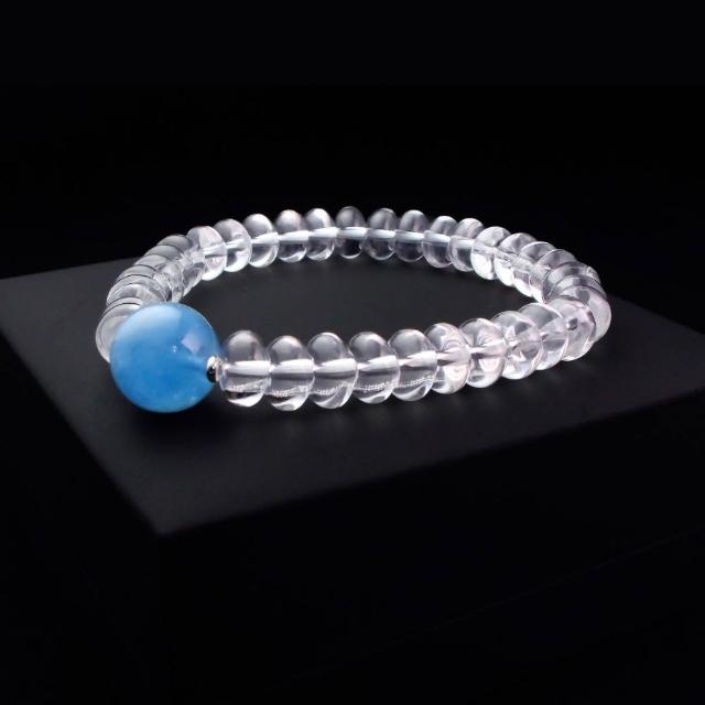Quelea 心到位海藍寶搭配白水晶 17cm 男手鍊 天珠手鍊 男手串