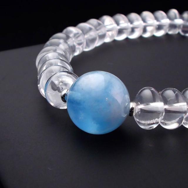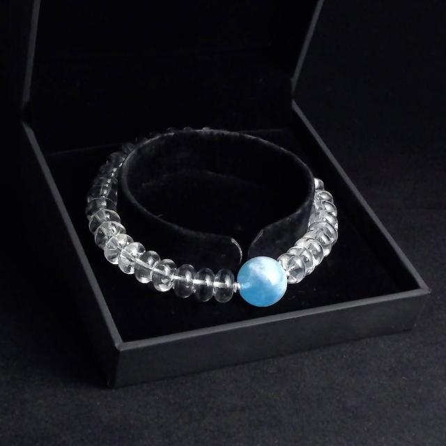Quelea 心到位海藍寶搭配白水晶 17cm 男手鍊 天珠手鍊 男手串