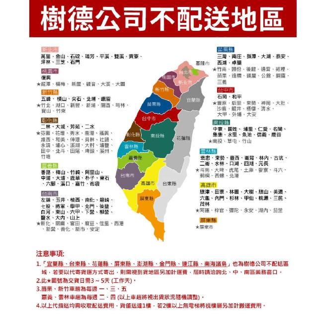 - 針對大型商品(包括:大型家電、家具床墊、健身按摩器材、車類...等),商店將於完成收款確認後,一天內〈不含例假日〉將會有專人與您確認相關配送細節等的聯繫。偏遠地區、樓層費及其它加價費用,皆由商店於約定配送時一併告知,商店將保留出貨與否的權利。