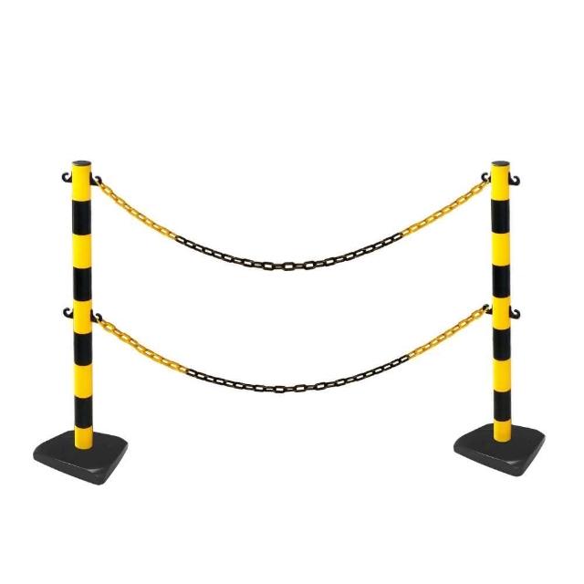 黃黑雙色 雙排塑膠欄柱2支+2米鍊條2條 警示柱 立柱 公安柱