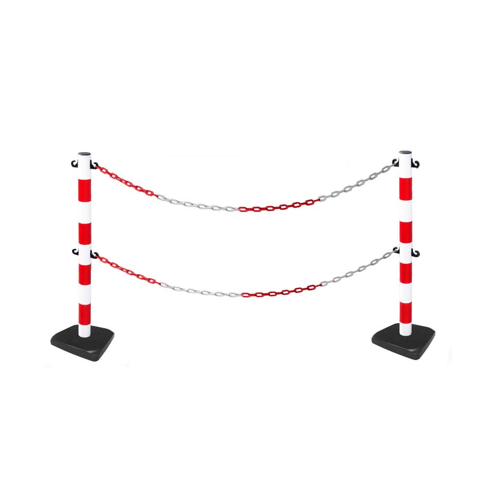 紅白雙色 塑膠欄柱2支+2米鍊條1條(警示柱 立柱 公安柱)