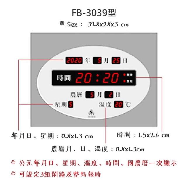 鋒寶牌插電式數字電子鐘 FB-3039型 橫式(電子日曆 萬年曆 掛鐘 時鐘)