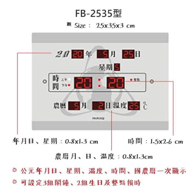鋒寶牌插電式數字電子鐘 FB-2535型 橫式(電子日曆 萬年曆 掛鐘 時鐘)