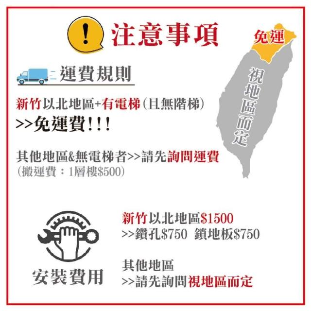 - 針對大型商品(包括:大型家電、家具床墊、健身按摩器材、車類...等),商店將於完成收款確認後,一天內〈不含例假日〉將會有專人與您確認相關配送細節等的聯繫。偏遠地區、樓層費及其它加價費用,皆由商店於約定配送時一併告知,商店將保留出貨與否的權利。