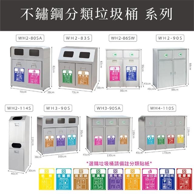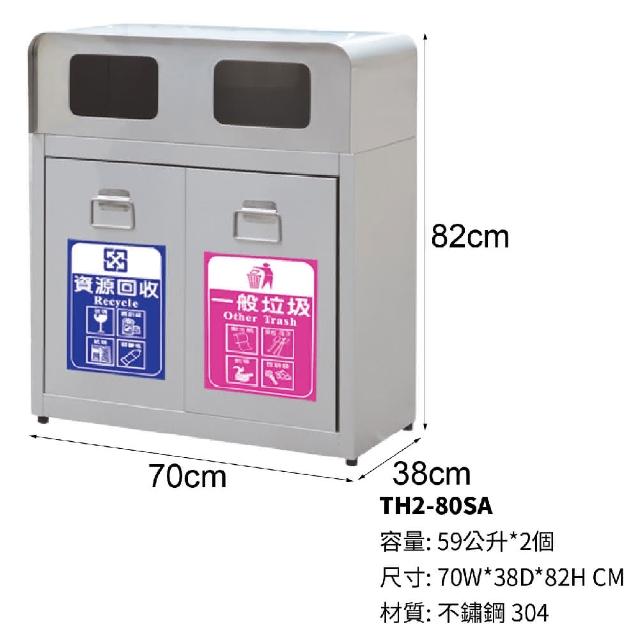 西瓜籽 不銹鋼二分類垃圾桶 WH2-80SA 不銹鋼垃圾桶 分類垃圾桶 公共場所 資源回收 戶外垃圾桶