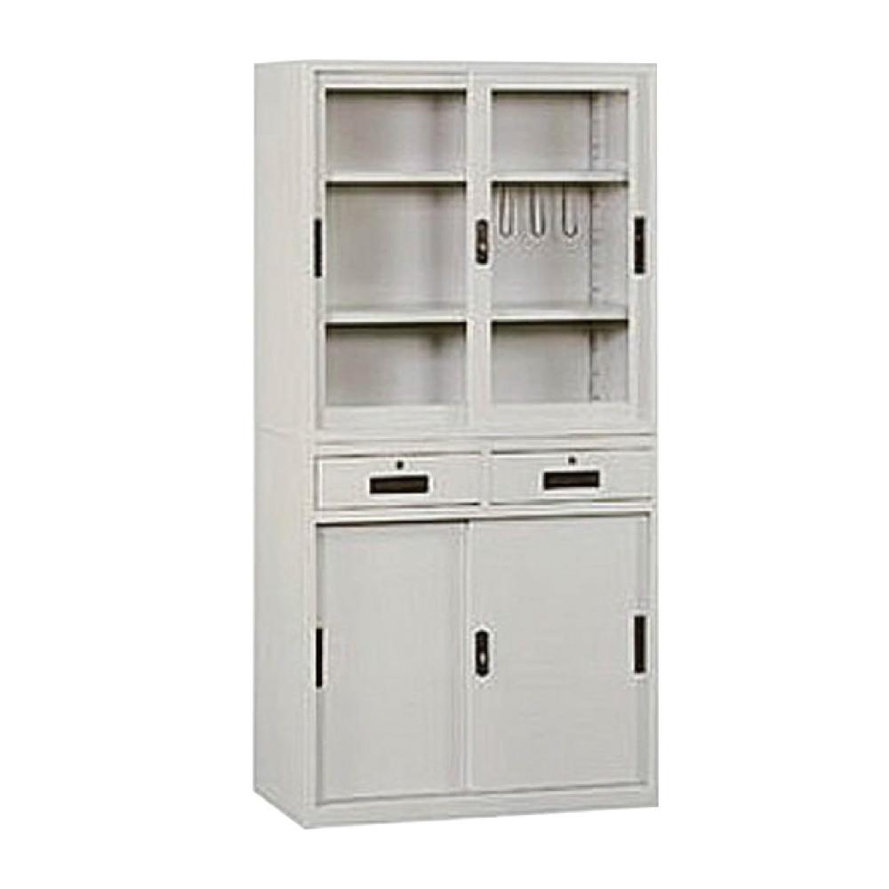 三尺玻璃拉門(上)+三尺中二抽鐵拉(下)KG-88+KS-88-2D 理想櫃 辦公櫃 收納櫃 資料櫃 檔案櫃 文件櫃