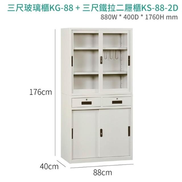 三尺玻璃拉門(上)+三尺中二抽鐵拉(下)KG-88+KS-88-2D 理想櫃 辦公櫃 收納櫃 資料櫃 檔案櫃 文件櫃