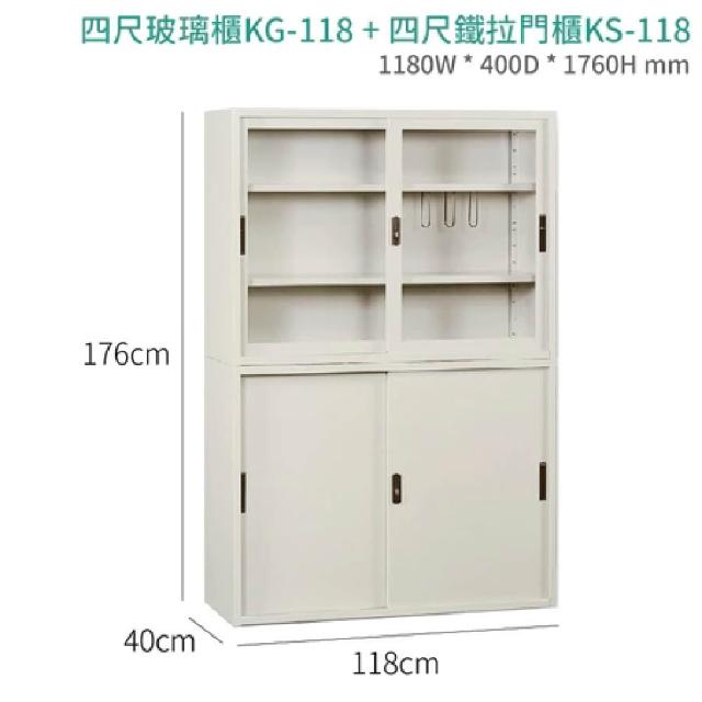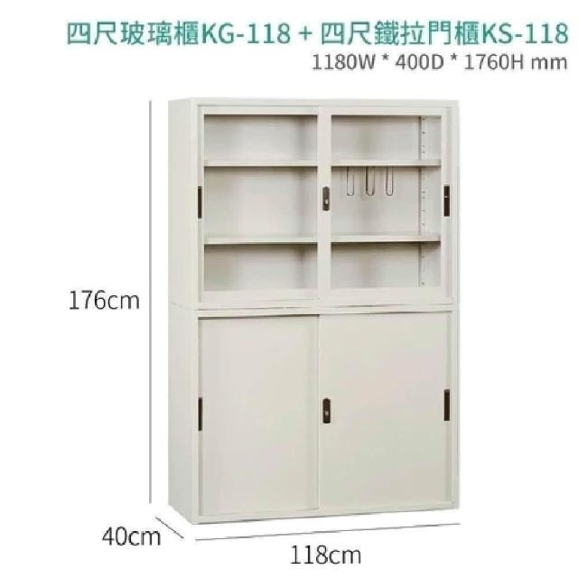 四尺玻璃拉門(上)+鐵櫃拉門(下) KG-118 KS-118 理想櫃 辦公櫃 檔案櫃 公文櫃 文件櫃 收納櫃 玻璃櫃
