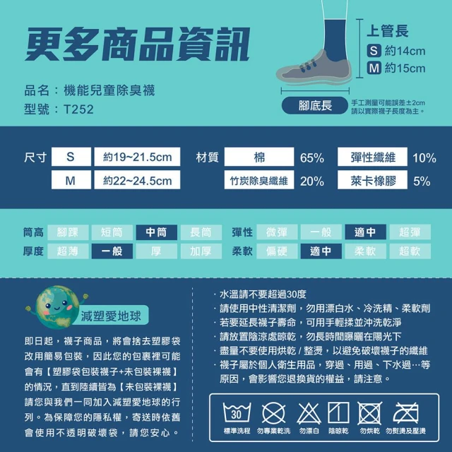 FAV1雙/機能兒童除臭襪/型號:T252(中筒襪/除臭襪/兒童襪/無痕襪)
