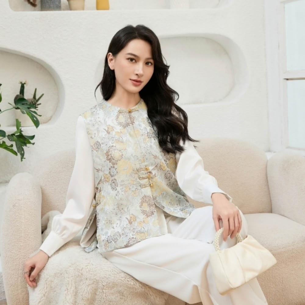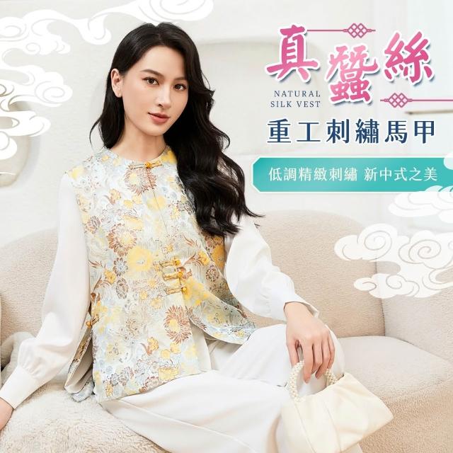 LLCD 綾羅綢緞【現貨快出】新中式蠶絲刺繡馬甲(背心/刺繡/真絲/中國風)