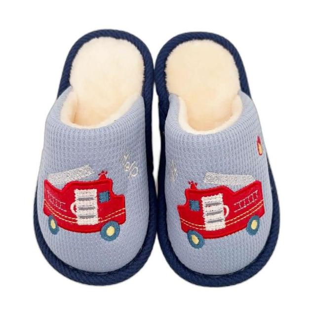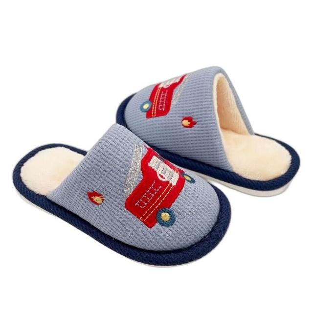 樂樂童鞋交通車兒童保暖拖鞋(童鞋 工程車 中大童鞋 車車 室內拖鞋 絨毛拖鞋 室內拖 兒童拖鞋 卡通拖鞋 交通車)