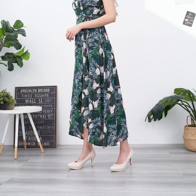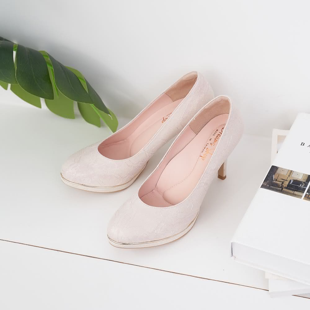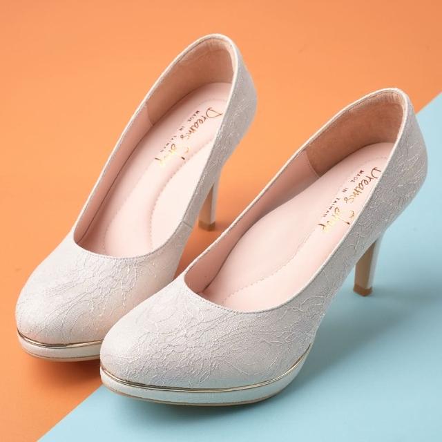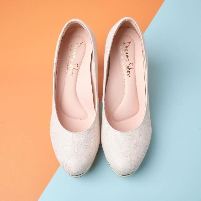 DREAMS SHOPMIT真皮減壓氣質花布防水台氣墊高跟鞋9cm 淺金高 大尺碼女鞋37-44