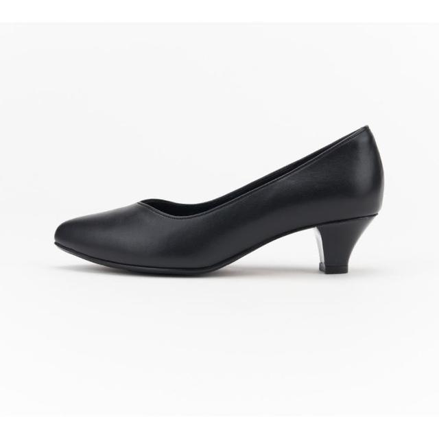 DREAMS SHOP寬楦_MIT真皮素面V口尖頭低跟鞋 黑色 大尺碼女鞋37-45