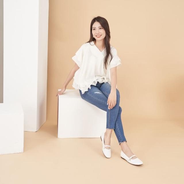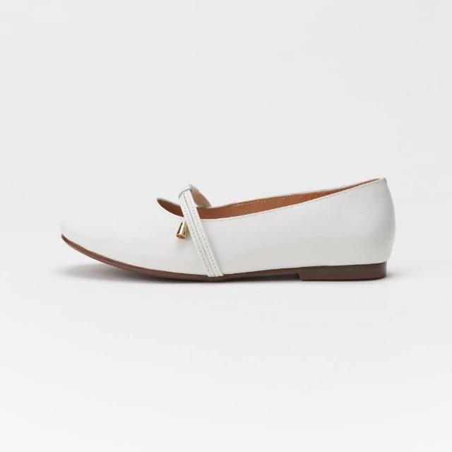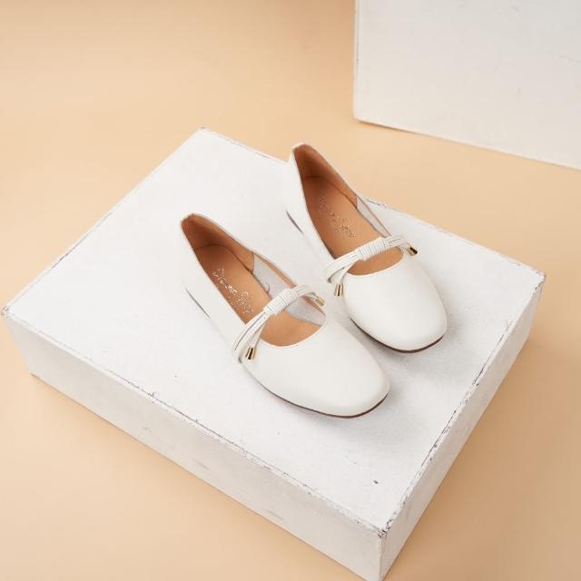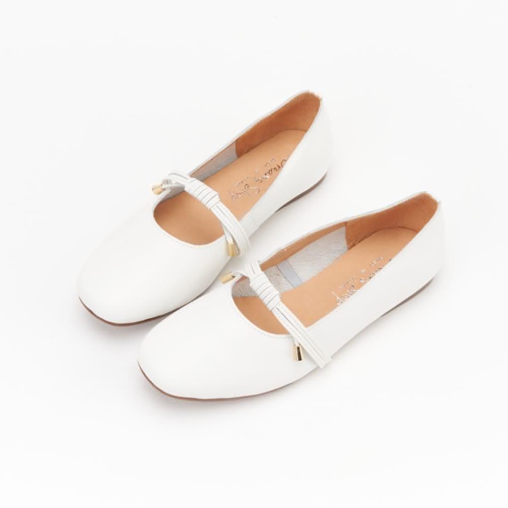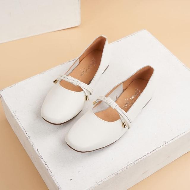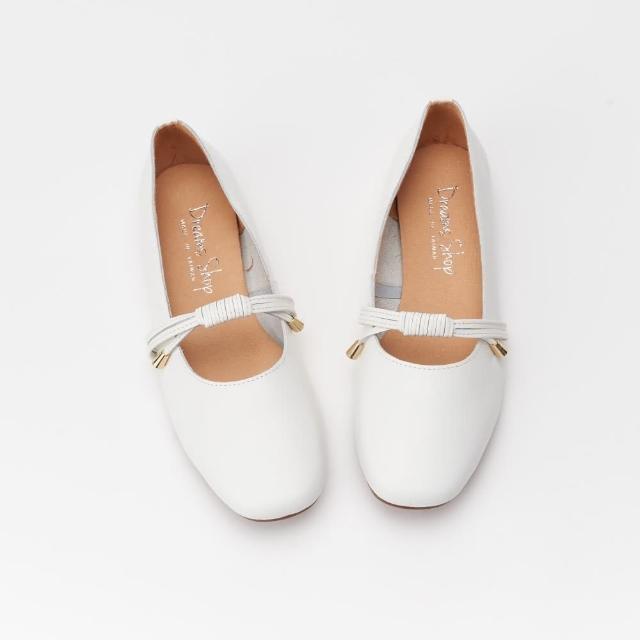 DREAMS SHOP瑪莉珍_MIT真皮結繩平底方頭娃娃鞋 白色 大尺碼女鞋37-45