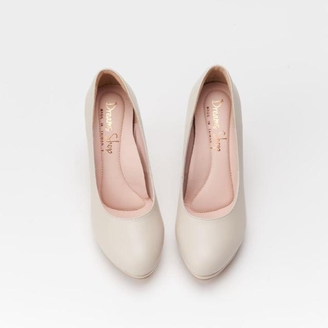 DREAMS SHOP防水台_MIT真皮素面簡約氣墊高跟鞋 米色 大尺碼女鞋37-44