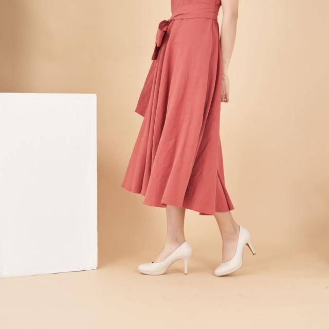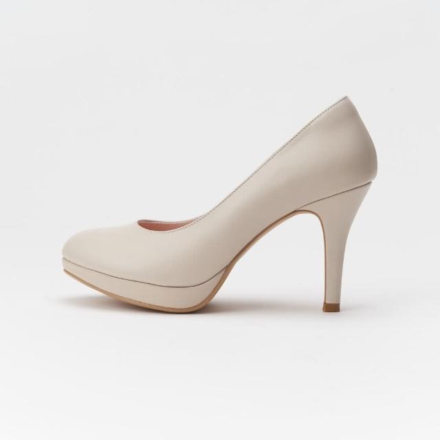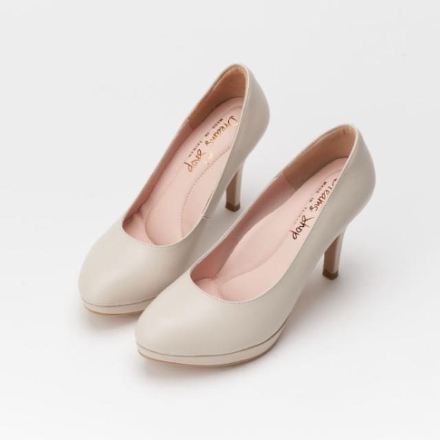 DREAMS SHOP防水台_MIT真皮素面簡約氣墊高跟鞋 米色 大尺碼女鞋37-44