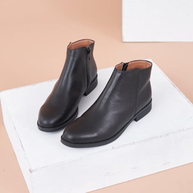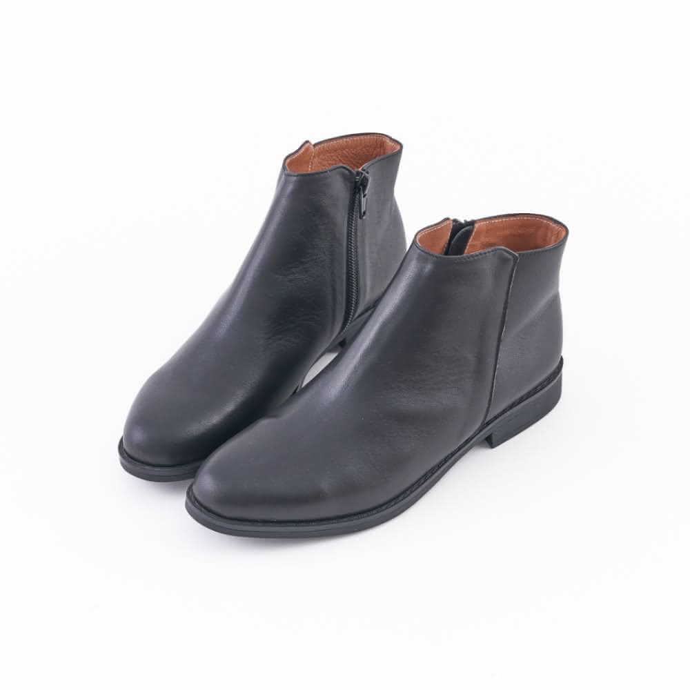 DREAMS SHOP軟牛皮_MIT真皮素面小圓尖頭平底短靴 黑色 大尺碼靴37-45
