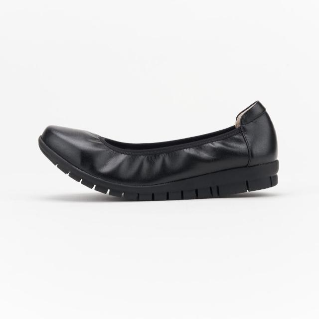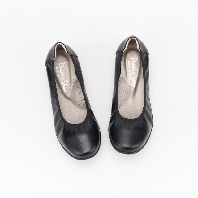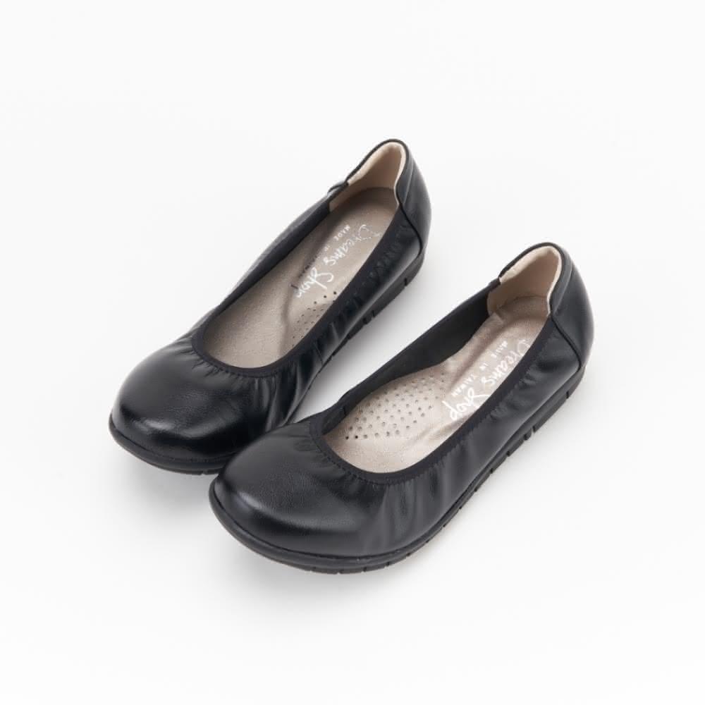 DREAMS SHOP寬楦氣墊_MIT真皮素面鬆緊帶娃娃鞋 黑色 大尺碼女鞋36-45 面試上班鞋
