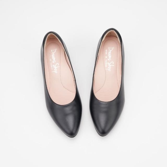 DREAMS SHOP寬楦氣墊_MIT真皮素面尖頭低跟鞋 黑色 大尺碼女鞋37-47