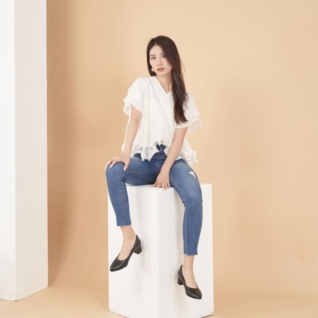 DREAMS SHOP寬楦氣墊_MIT真皮素面尖頭低跟鞋 黑色 大尺碼女鞋37-47