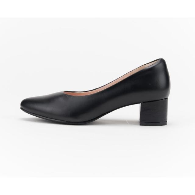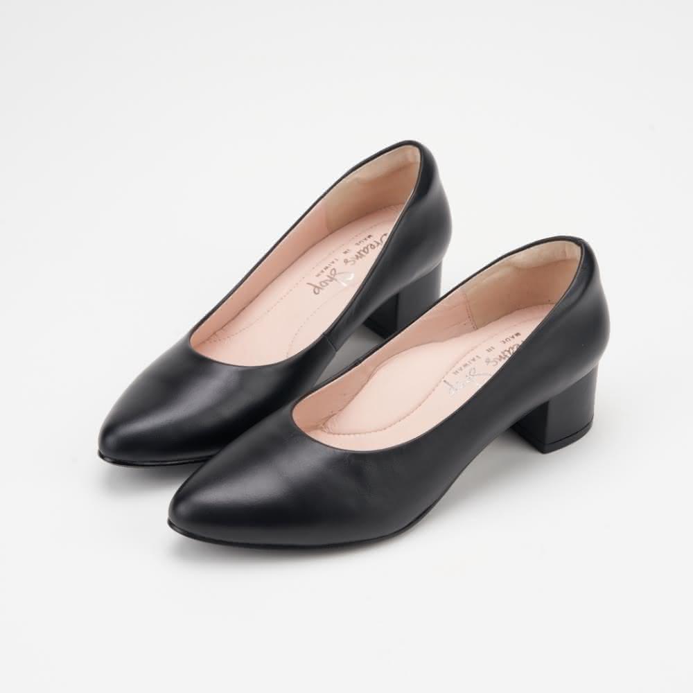 DREAMS SHOP寬楦氣墊_MIT真皮素面尖頭低跟鞋 黑色 大尺碼女鞋37-47