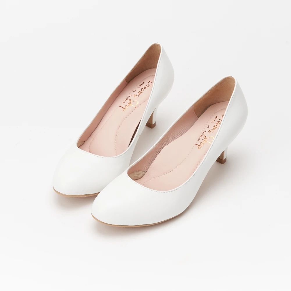 DREAMS SHOP氣墊_MIT真皮素面圓頭高跟鞋 白色 大尺碼女鞋37-44