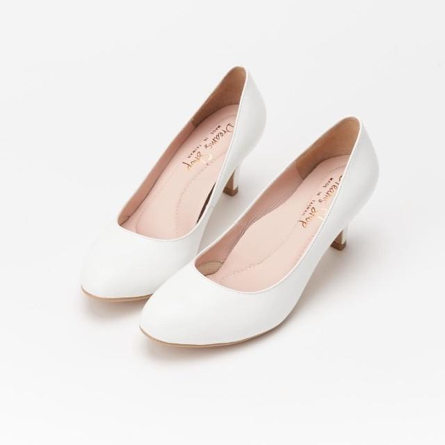 DREAMS SHOP氣墊_MIT真皮素面圓頭高跟鞋 白色 大尺碼女鞋37-44