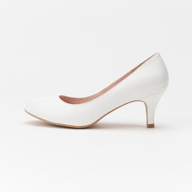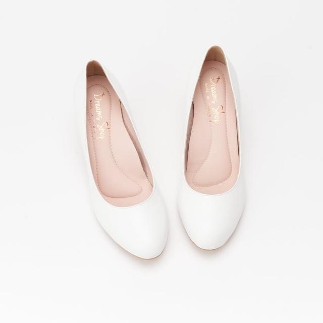 DREAMS SHOP氣墊_MIT真皮素面圓頭高跟鞋 白色 大尺碼女鞋37-44