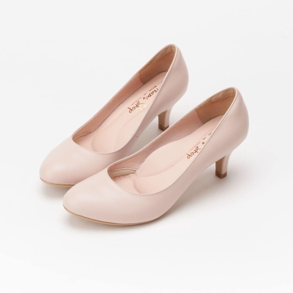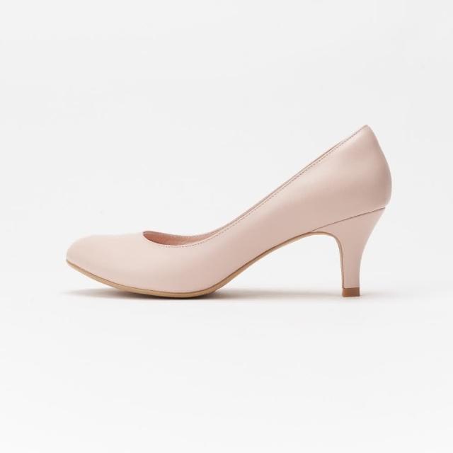 DREAMS SHOP氣墊_MIT真皮素面圓頭高跟鞋 粉色 大尺碼女鞋37-44