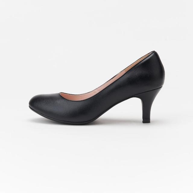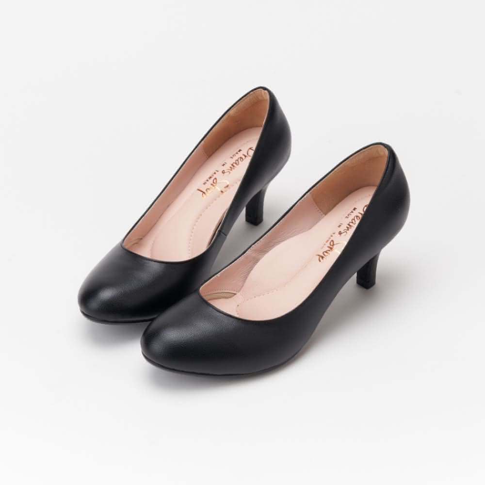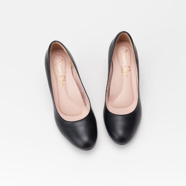 DREAMS SHOP氣墊_MIT真皮素面圓頭高跟鞋 黑色 大尺碼女鞋37-44