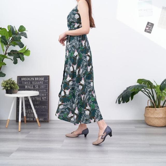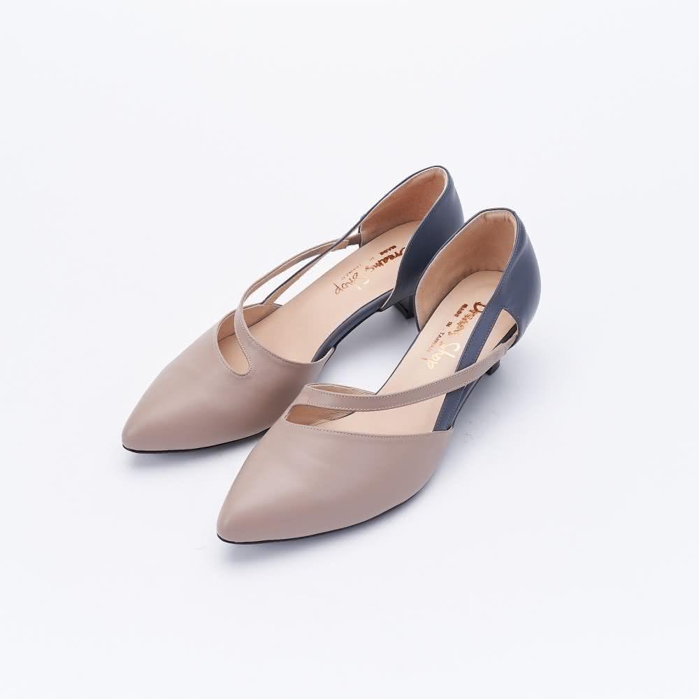 DREAMS SHOP寬楦_MIT真皮拼色側空尖頭低跟鞋 芋粉 大尺碼女鞋37-45