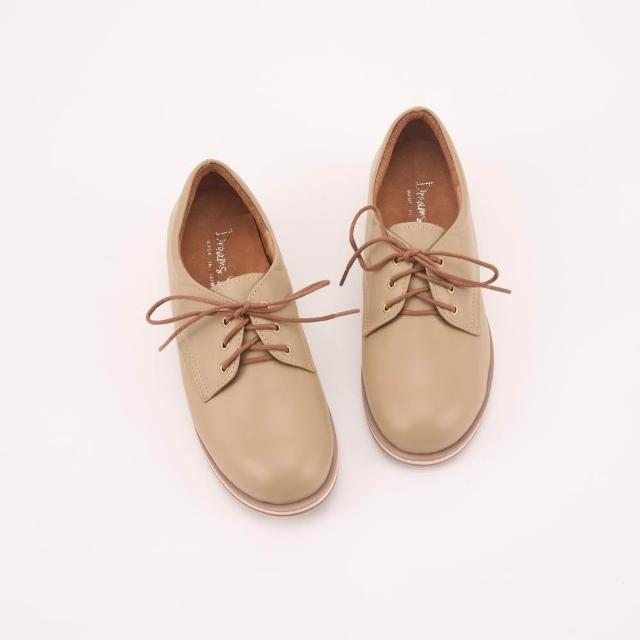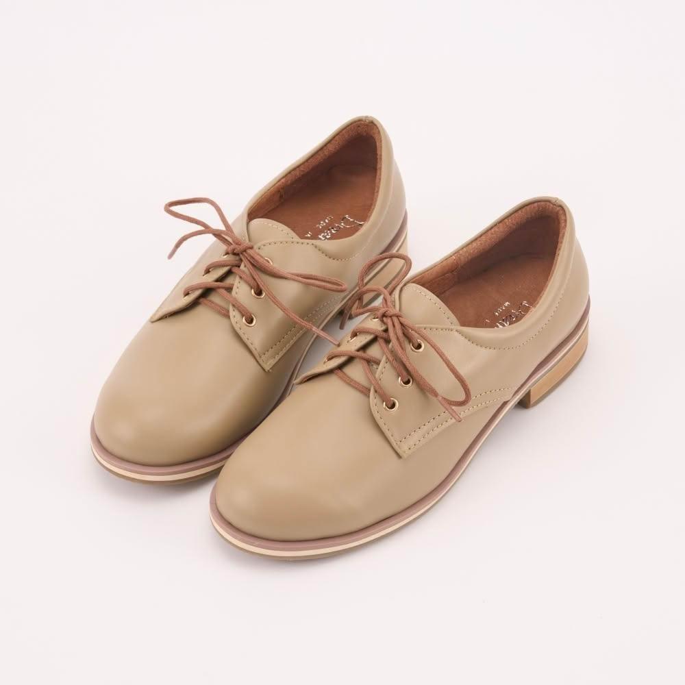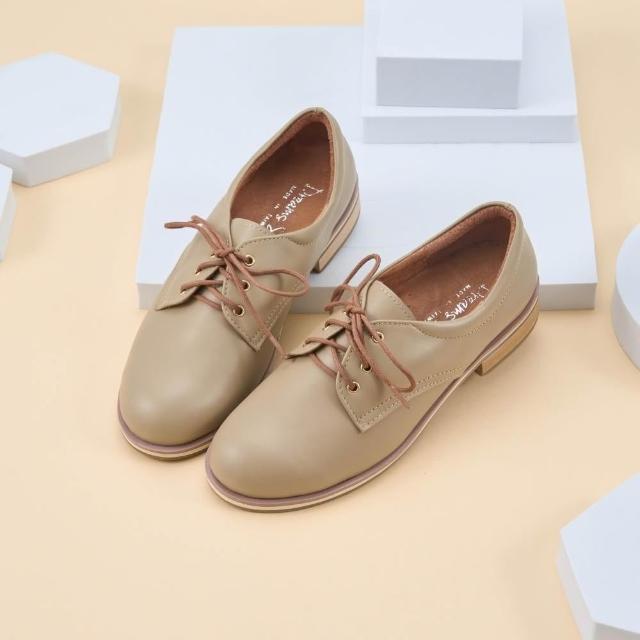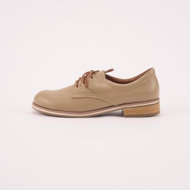 DREAMS SHOP足弓支撐_MIT真皮素面木跟圓頭牛津鞋 駝色 大尺碼女鞋37-46