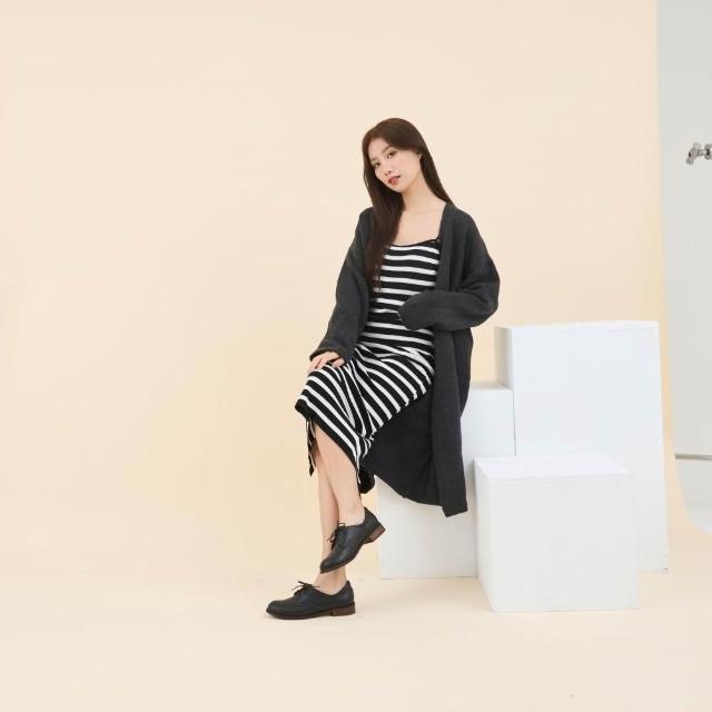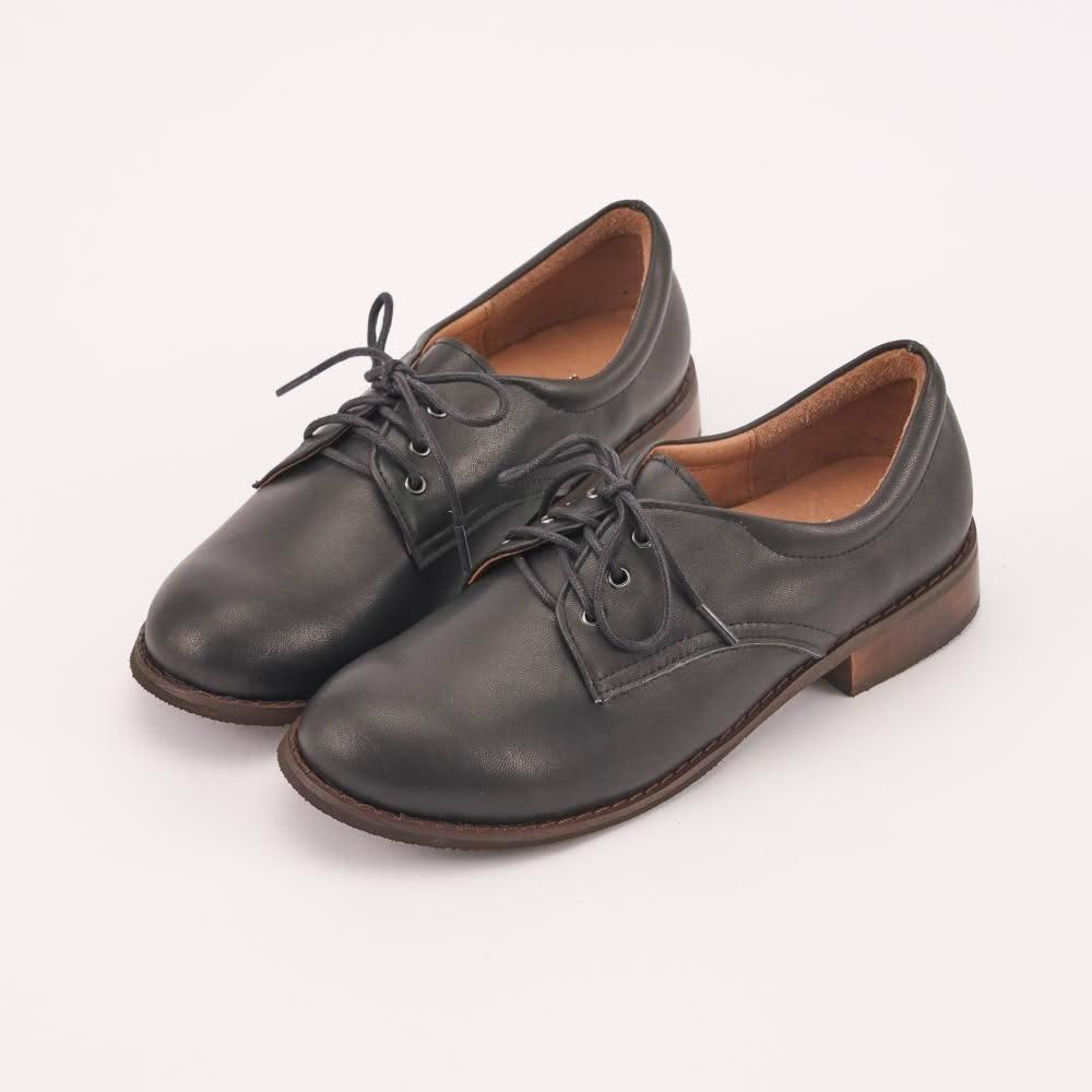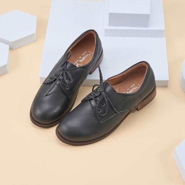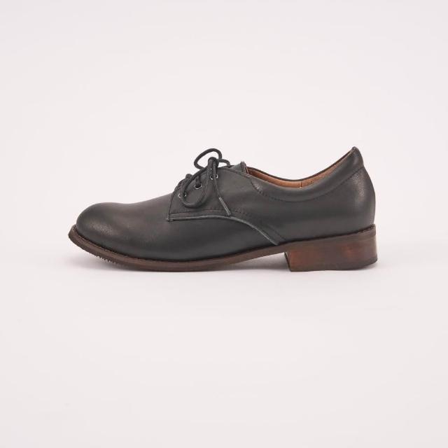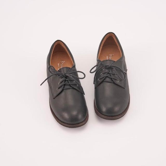 DREAMS SHOP足弓支撐_MIT真皮素面圓頭木跟德比鞋 黑色 大尺碼女鞋37-46
