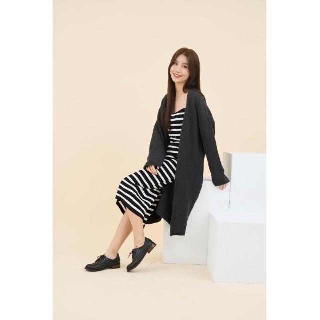 DREAMS SHOP足弓支撐_MIT真皮素面圓頭木跟德比鞋 黑色 大尺碼女鞋37-46