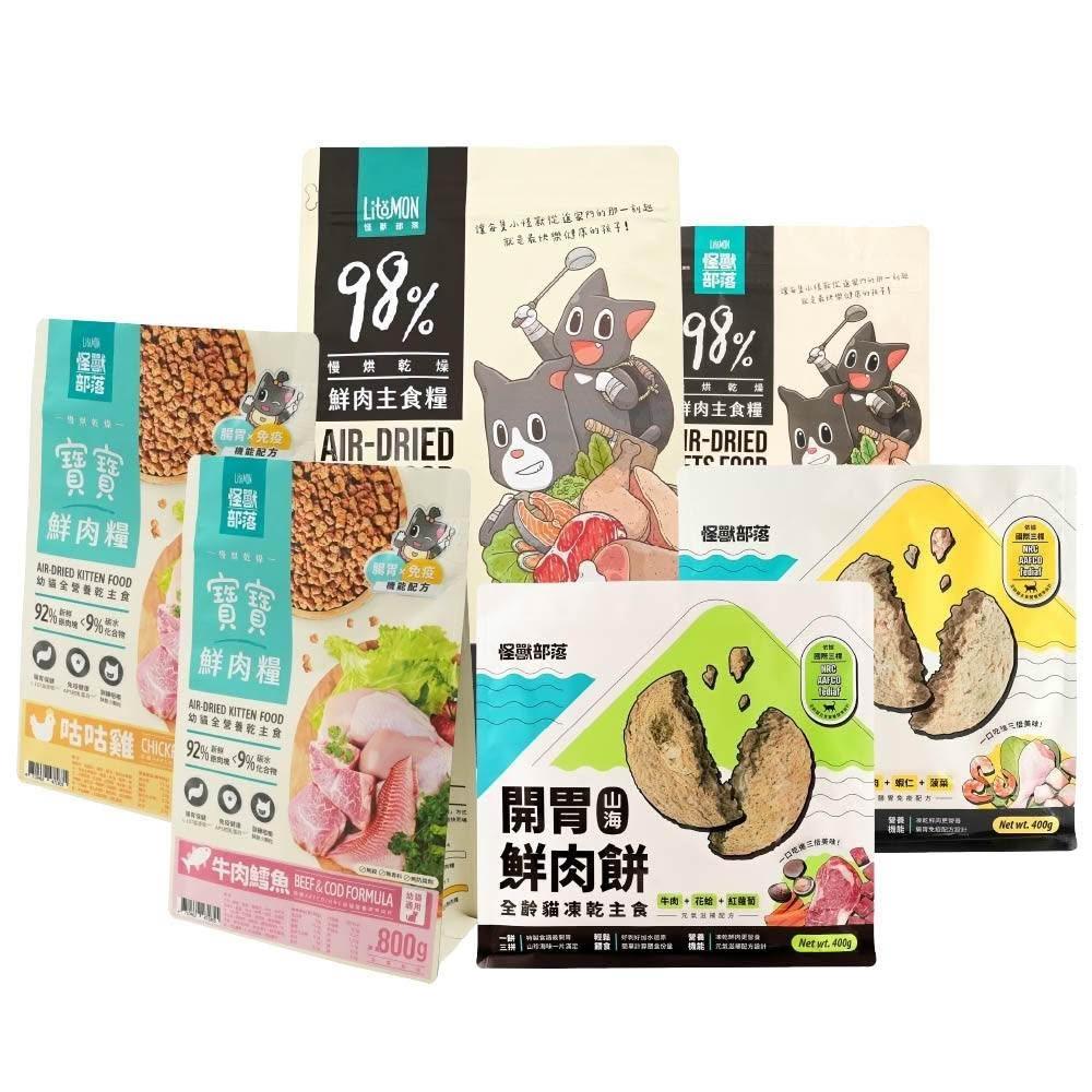 怪獸部落LitoMON 貓咪 〈大包裝〉 鮮肉主食糧 開胃山海鮮肉餅 貓咪飼料 貓乾糧 無穀 1.8kg 800g 400g