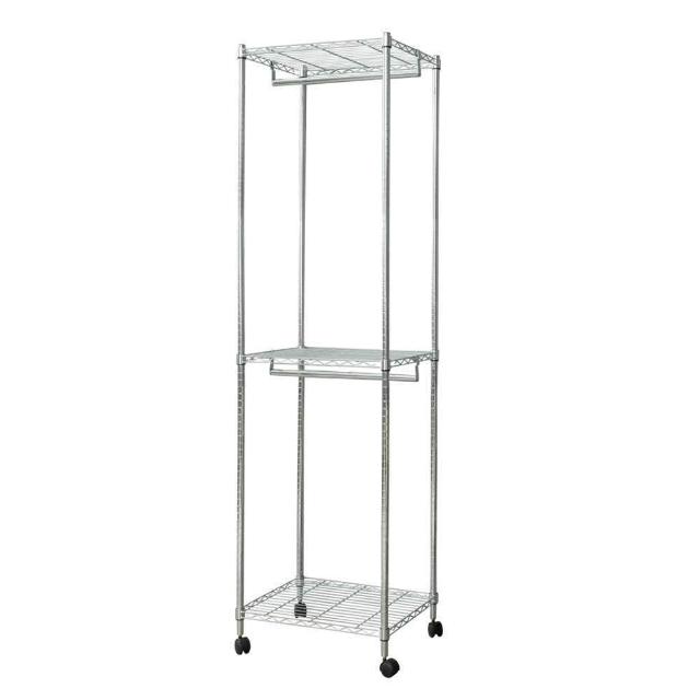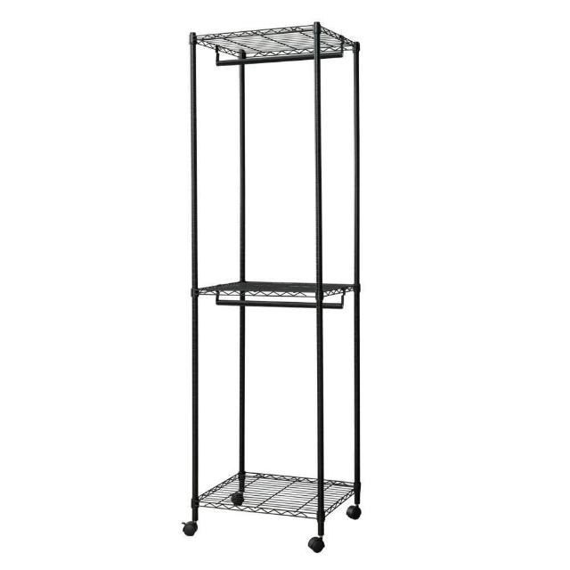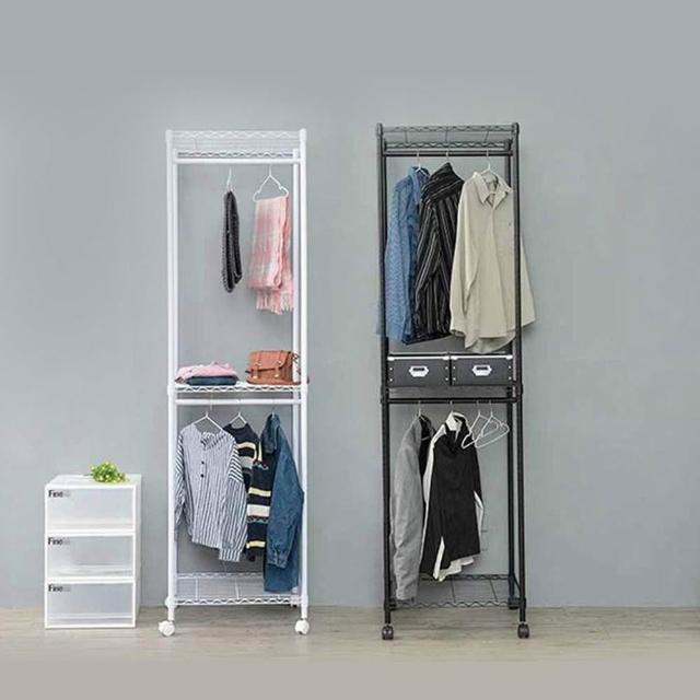 《H&B》寬60x深45x高210公分 三層雙桿衣櫥架 含活動輪 收納架 置物架 DIY鐵架