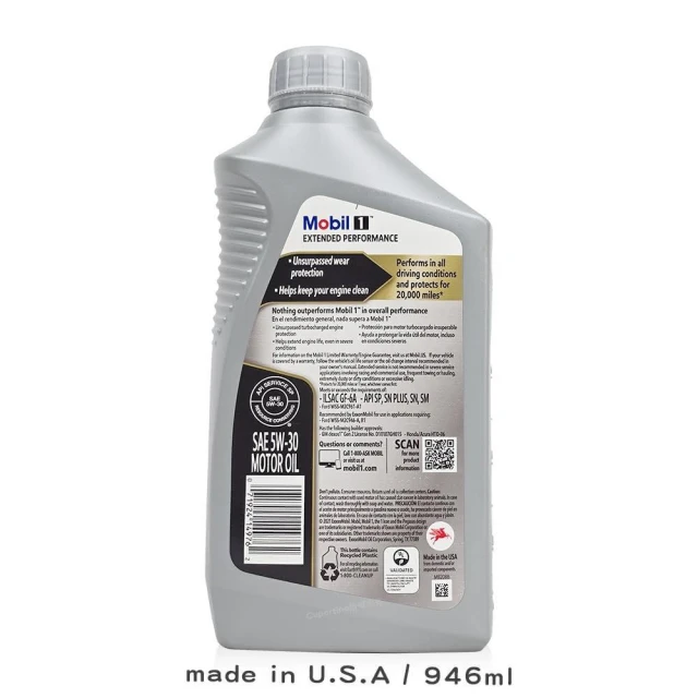 MOBIL 美孚Mobil1 美孚 機油|EP 5W30|946ml|全合成|長效保護|LSPI防護|API SP|庫柏蒂諾