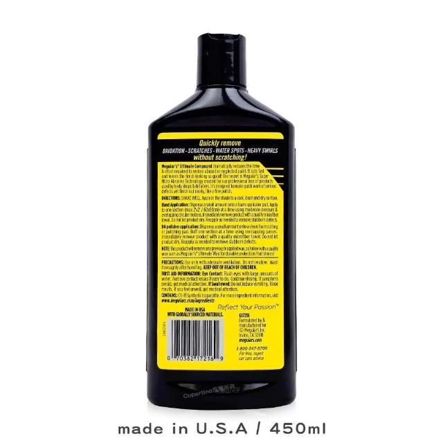 MeguiarsMeguiar's 美光 美容劑|G17216|450ml|鏡面處理去除螺旋紋|微研磨不傷漆|庫柏蒂諾