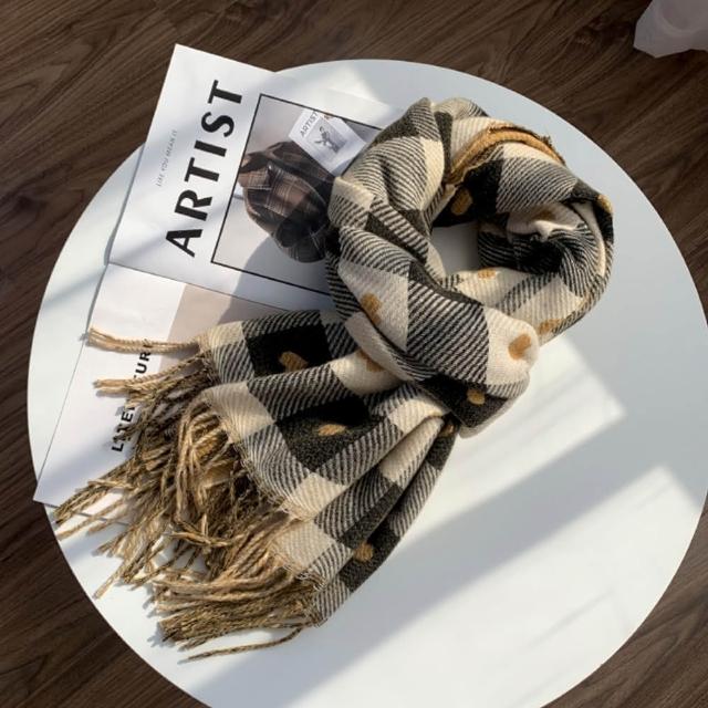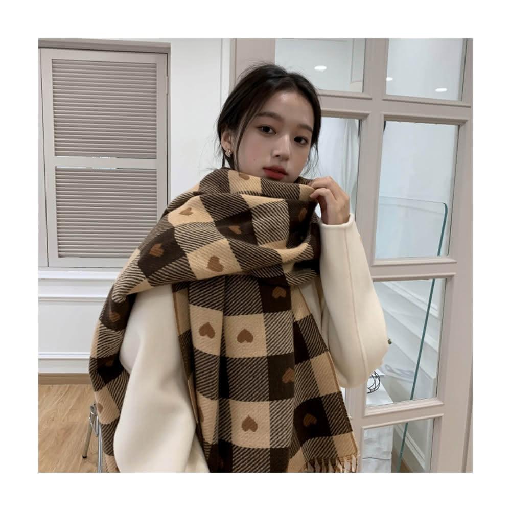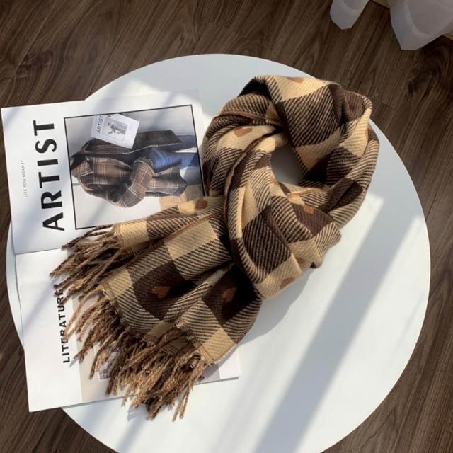 HanVo棋盤格雙面愛心圍巾(日韓系造型休閒百搭針織保暖圍巾 女生衣著配件 C04-8146)