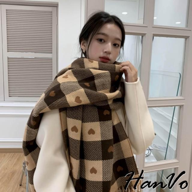 HanVo棋盤格雙面愛心圍巾(日韓系造型休閒百搭針織保暖圍巾 女生衣著配件 C04-8146)